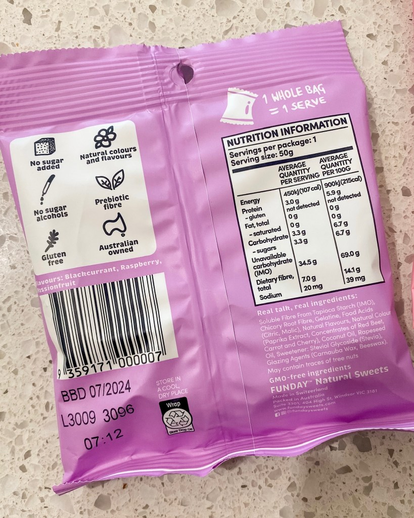 One thing to be aware of though, is that they do have artificial sweeteners. While they gave me a bit of a sore tummy (I’m very sensitive to artificial sweeteners), my daughter loves them and eats them with no problems at all.