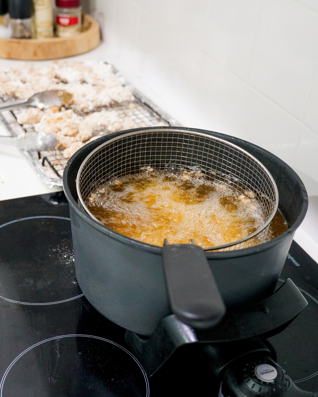 - Cook in a deep fryer, on an oven rack, or in an air fryer until cooked. If using an oven rack or air fryer, turn a couple of times during cooking to ensure the coating doesn’t stick to the tray.